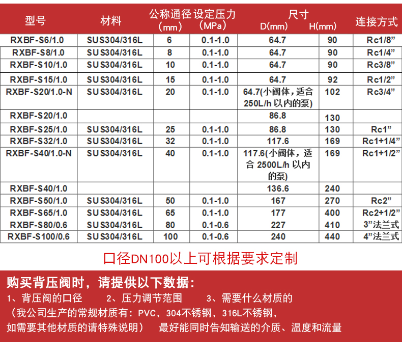 口徑DN100以上可根據要求定做 |