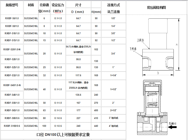 1: 背壓閥用于防止液體在重力作用下自流(或虹吸),這時候一般選用大于液體自身壓力即可,如防止液位為2米藥箱中的液體自流,可選用壓力大于0.02MPa的背壓閥,一般選用0.1MPa即可。