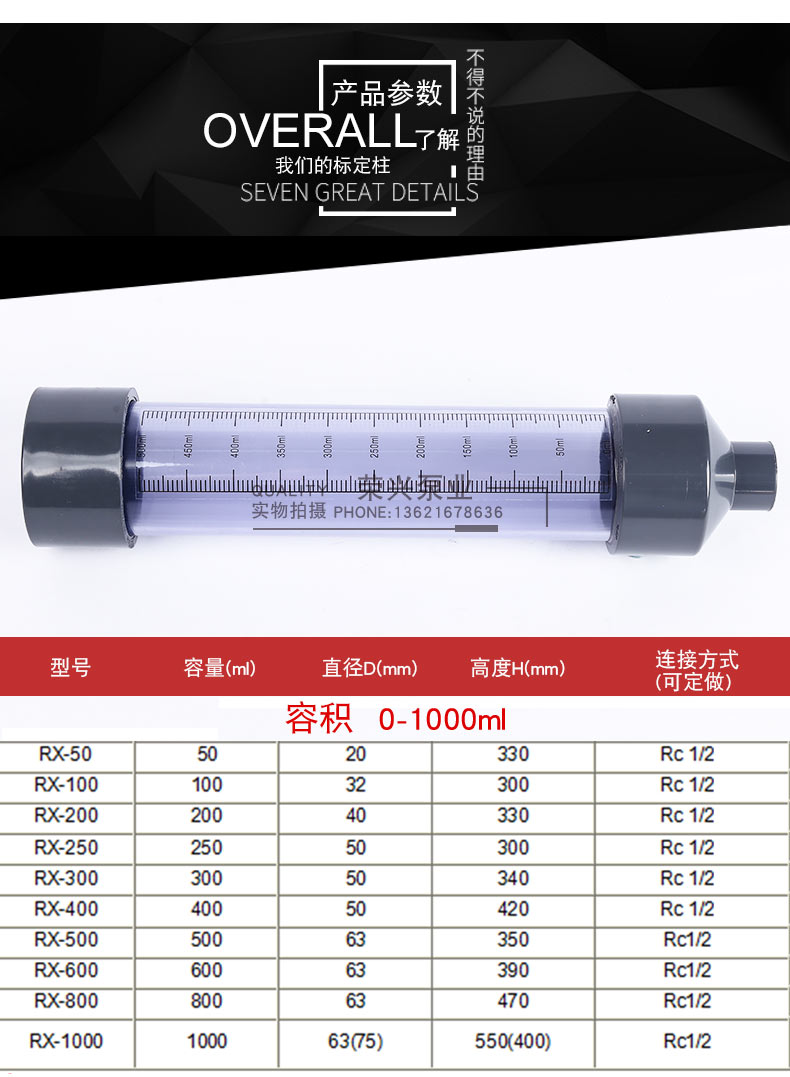 我公司生產的流量標定柱透明管材質有:有機玻璃,透明PVC, 石英玻璃(小容積);