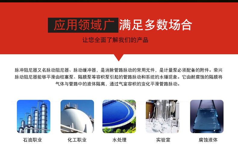 1、 膜片式脈沖阻尼器的容積、材質(zhì)、連接方式(或提供泵的流量、壓力、介質(zhì)、材質(zhì),由我公司為您提供精確選型)